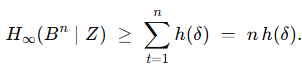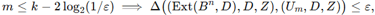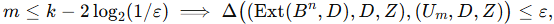 Let k:=H∞(Bn∣Z). For a strong seeded extractor Ext:{0,1}n×{0,1}d → {0,1}m,